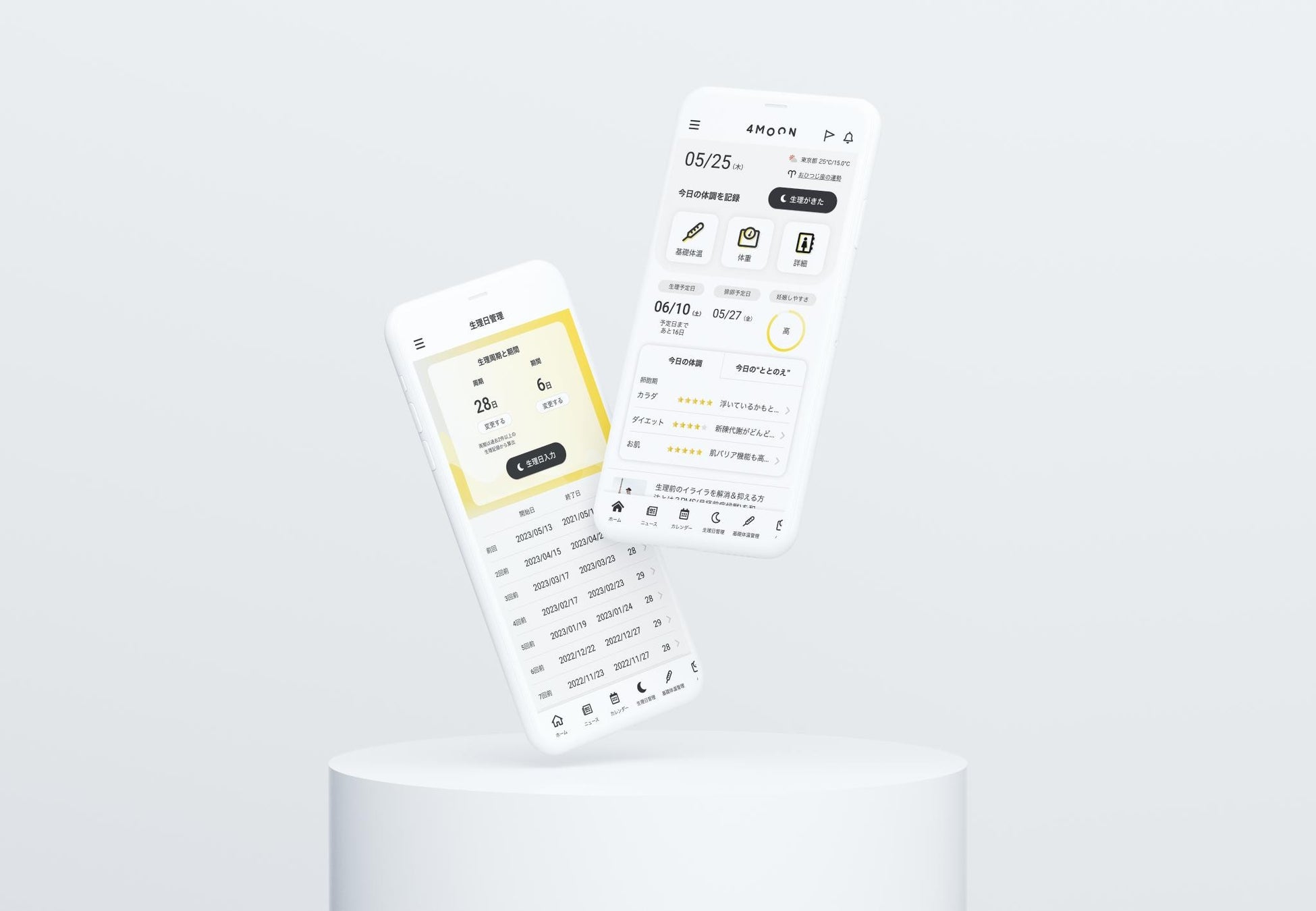 女性の身体は生理周期によって日々変化します。4MOON では、「記録する習慣」を身につけることで、すべての女性が自分の心身と毎日上手に付き合っていくことができるようサポートしています。