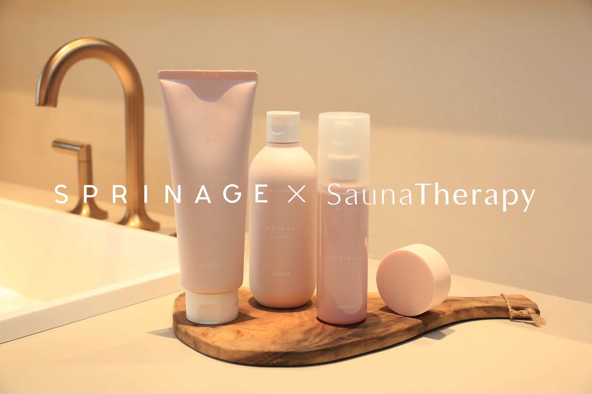 表参道にある完全個室の女性専用サウナ『SaunaTherapy』は、仕事や家事に追われる現代女性に、心と体を内側から整える特別なリラクゼーション空間を提供しています。この度、『SPRINAGE』の「シンプルなケアで、肌と髪、そして心を満たす」という理念と、『SaunaTherapy』が提案する「サウナを通して、日常のストレスから解放される」というコンセプトが融合し、期間限定でのコラボレーションが実現しました。