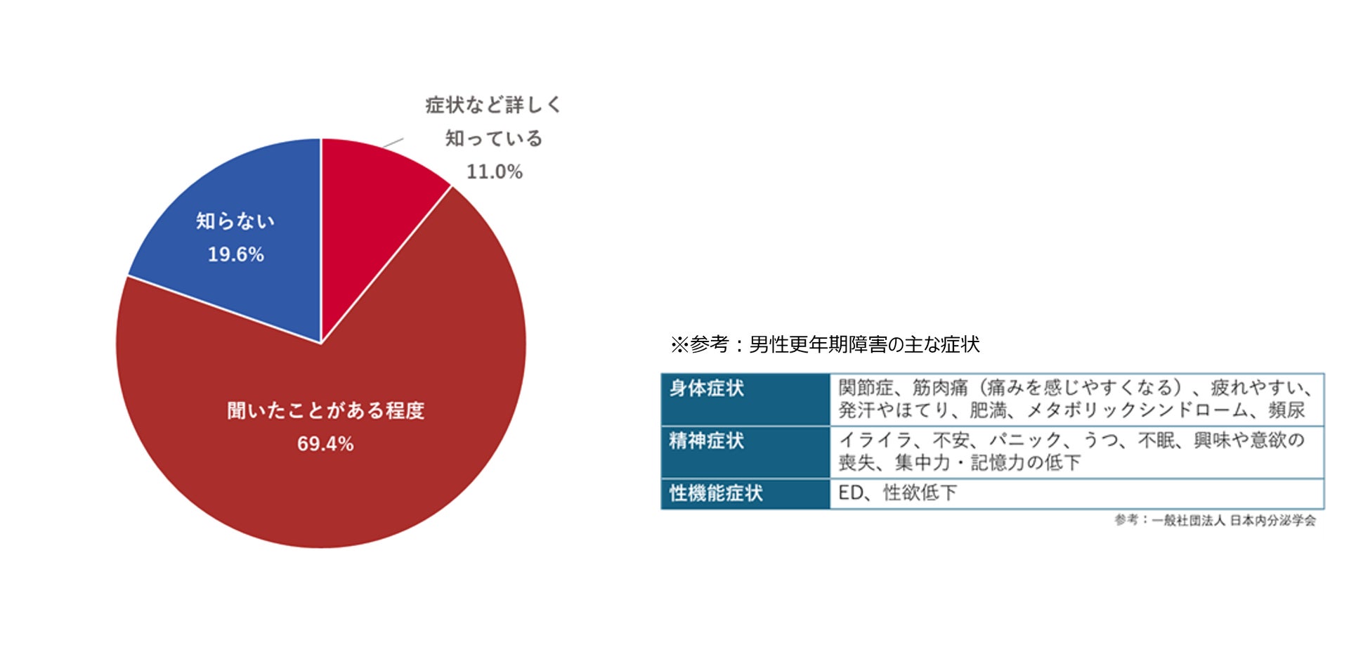 今回の調査でも、男性の更年期についての認識は8割以上と高いものの、自身の身体の不調や悩みが更年期による可能性があると認識している男性はまだ少ない。