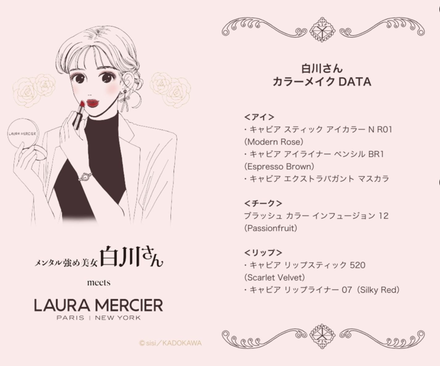 ローラ メルシエ ジャパンが展開中のコミック「メンタル強め美女白川さん」とのコラボレート企画。新キャビア カラーコレクションの発売を記念して公開された「キャビア リップスティック」を使用している主人公 白川さんのイラストで使用している「キャビア リップスティック 520」と、現在カウンセリングカウンターでスタッフが着用中の「特製白川さん缶バッジ(非売品)」のプレゼントキャンペーンを開催!