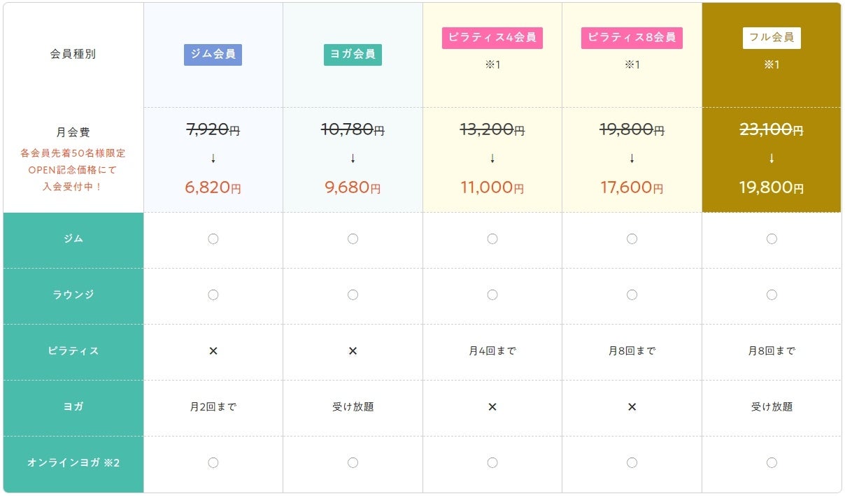 ※体験レッスン、オープン後の通常レッスンスケジュールをご覧いただけます。ご予約もこちらから