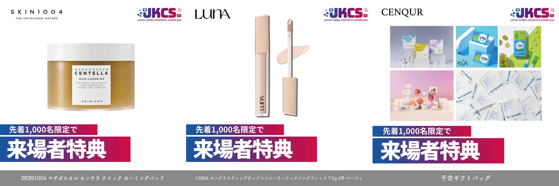 JKCS2024に来場いただいた先着1,000名様(1日500名様)全員に、韓国の4ブランドのサンプルがセットになった「JKCS2024サンプリングセット」をプレゼントします。受付でのお渡しとなります。