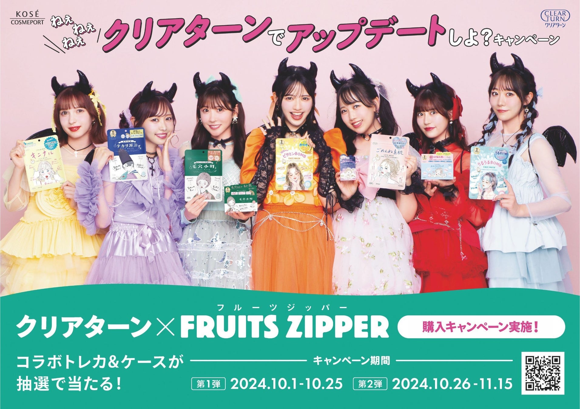 コーセーコスメポート株式会社(本社:東京都中央区、代表取締役社長:小林 孝雄)は、「ねぇねぇねぇ、クリアターンでアップデートしよ?キャンペーン」を実施します。期間は、第1弾が10月1日から10月25日まで、第2弾が10月26日から11月15日までで、『クリアターン イラストレーターコラボシリーズ』の対象商品を1品購入したレシートで応募でき、抽選で合計200名様※にクリアターン×フルーツジッパーオリジナルグッズが当たるキャンペーンです。