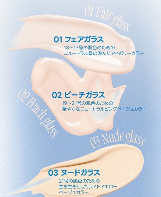 肌のコンディション問わずなめらかに密着し、ガラス玉のような澄んだツヤ肌を演出します。