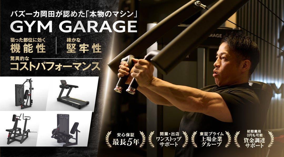 革新的な効果・堅牢性・コストパフォーマンスを実現したバズーカ岡田が認めたオリジナルマシン「GYM GARAGE(ジムガレージ)」リリース1周年記念! 用賀ショールームやSNSでキャンペーンを開催
