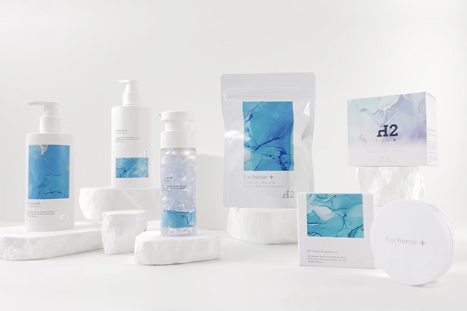 最後に、弊社の商品は大人気商品のヘアケアシリーズを始めとし、Exchange+サプリメントも好評発売中です。そして新たに昨年末にExchange+H2クリアファンデーション、今年3月にExchange+H2クリアUVエッセンスを販売しております!^^