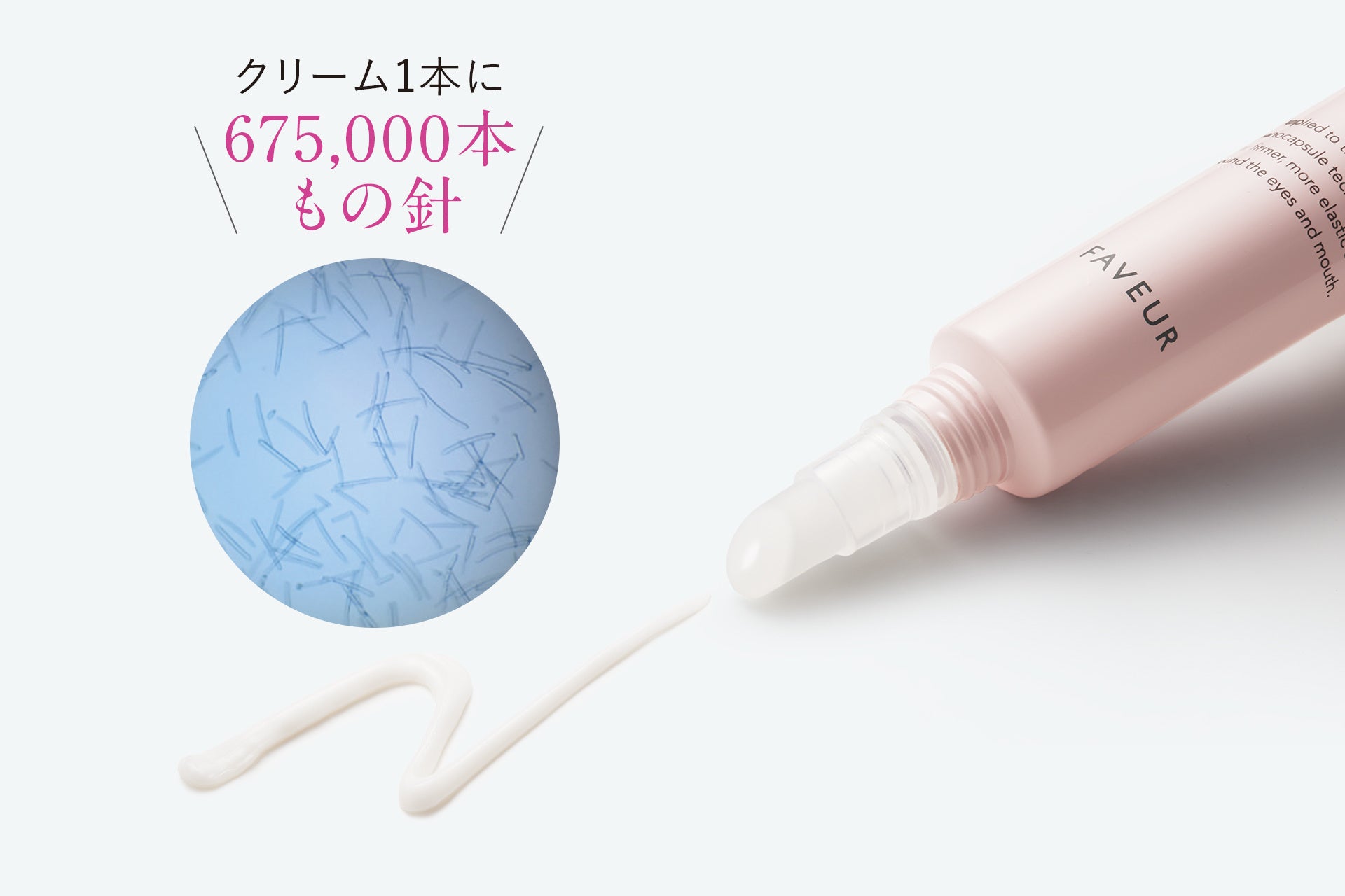 年齢を重ねた大人肌に寄り添い続ける、エイジングケア※7ブランド『FAVEUR』から、ニードルアイ&リップリフトクリームCCが新登場!「目元・口元(ほうれい線まわり)・首」に直接成分を届けるため独自のテクノロジーを採用した、日本初※6のニードルボトストレッチ処方®で、「マイクロニードル×ナノ化カプセル&次世代※9成分(エクソソーム※18・NMN※10・ヒト幹細胞順化培養液※5・水添レチノール※5)」のトリプル効果を備えています。毛穴よりも小さなマイクロニードルが、美容成分を肌の深層※15に届け、肌にハリをもたらします。使用する度に、見た目年齢が若返る手ごたえを感じてみてください。