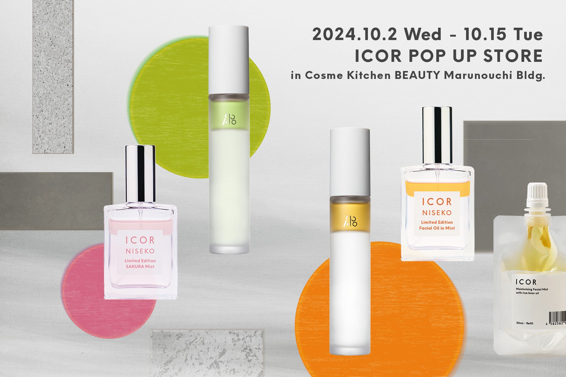 北海道ニセコ羊蹄山の雪解け湧水や道産成分にこだわった、国産ビーティーケアブランド『 ICOR(イコ)』(https://icor.jp) を展開する株式会社ICOR(代表取締役:竹下マリ)は、2024年10月2日(水)〜2024年10月15(火)までの14日間、Cosme KitchenBEAUTY 丸ビル店にて期間限定POPUPを開催いたします。