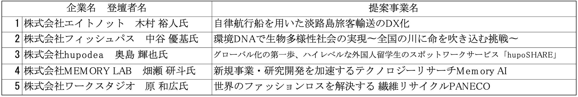 ■ファイナリスト一覧とピッチイベントについて