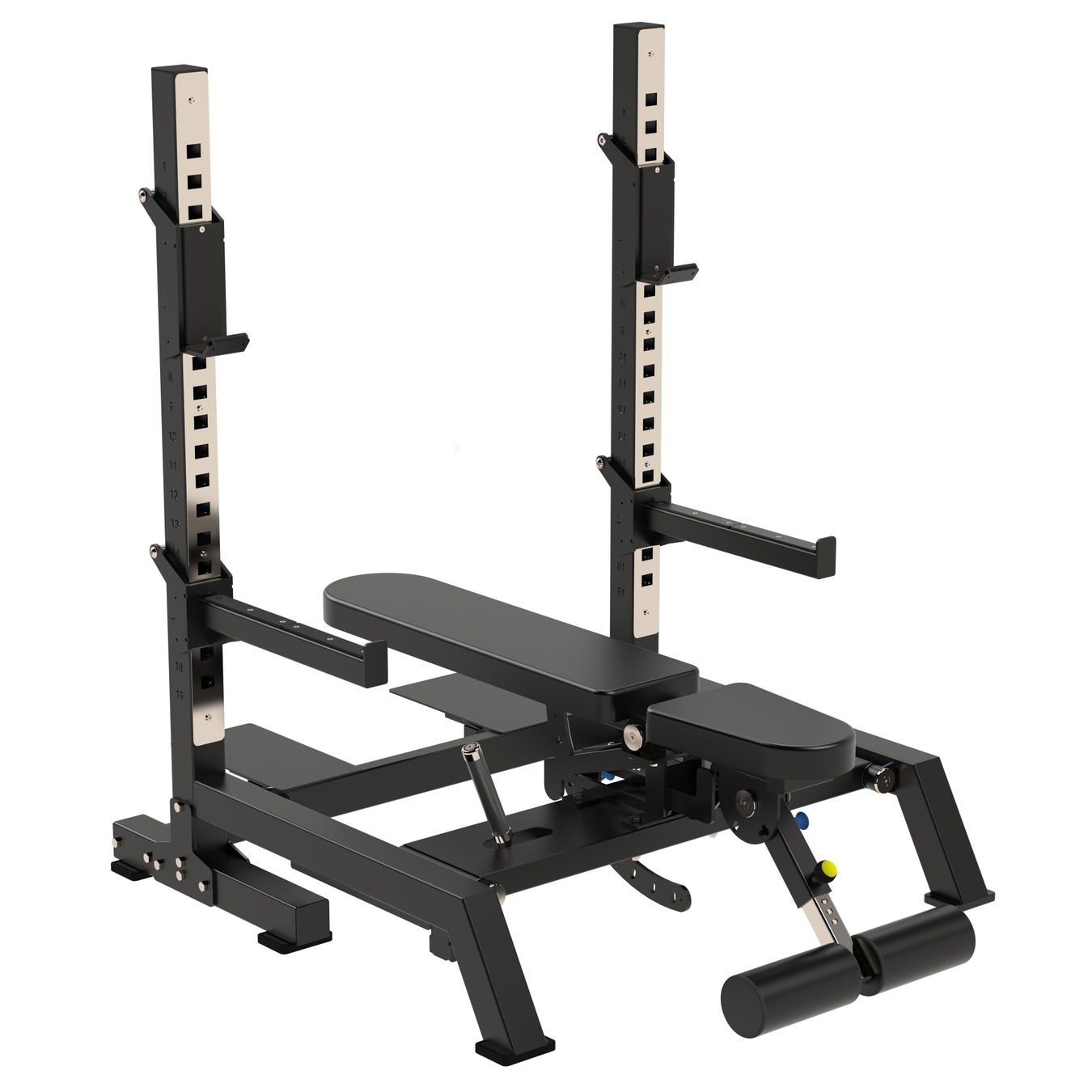 1台3役の多機能性: フラット、インクライン、デクラインの3種類のベンチプレスを1台でこなせる多機能設計。大胸筋の上部、中部、下部を効率的に鍛えることができます。