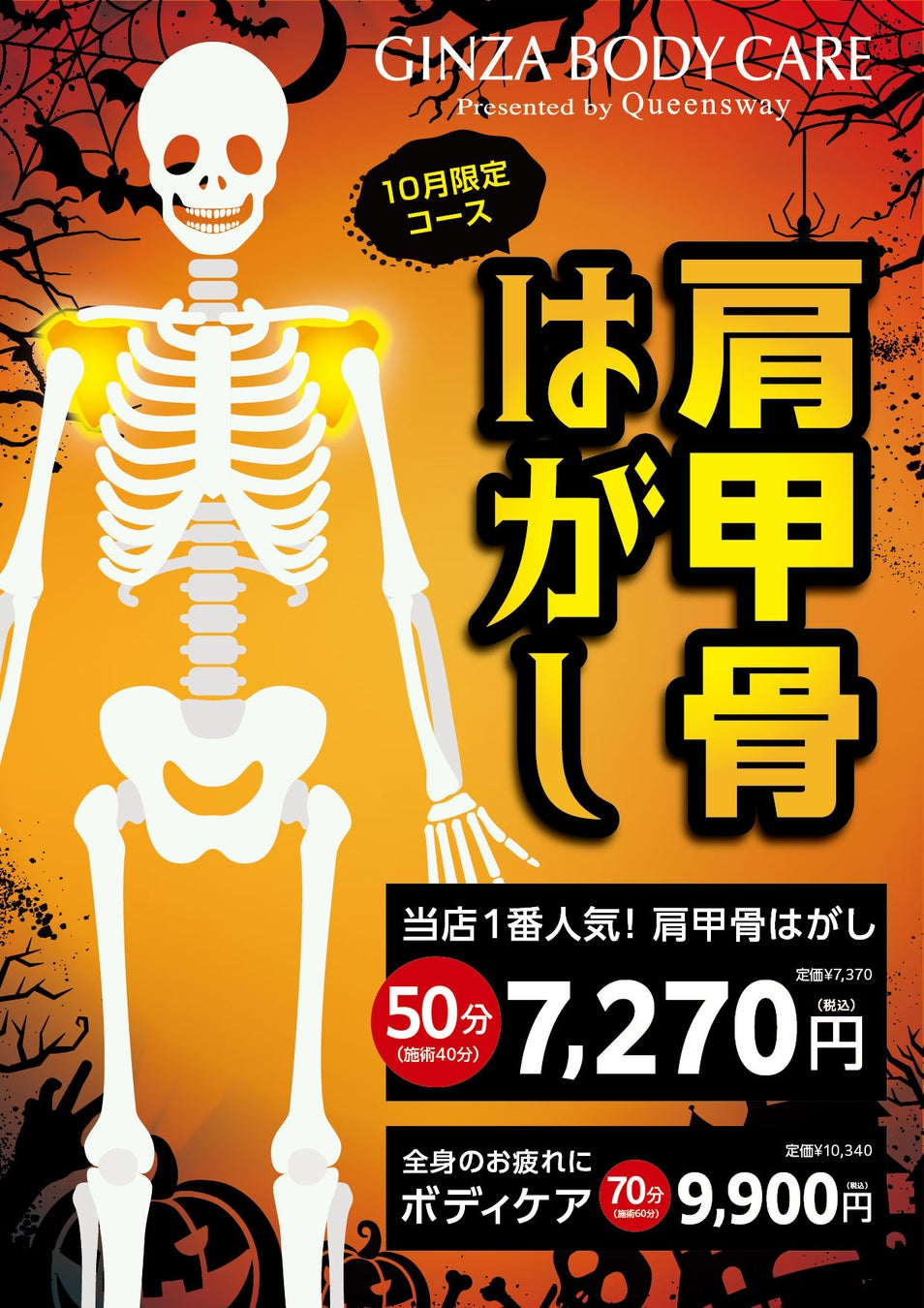 また、全身がお疲れの方には70分間の全身ボディケアが9,900円(通常10,340円)とこちらもお得となっております。