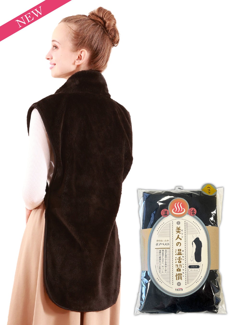 ・首からヒップまでカバーする丈で、冷える背中をすっぽりと包み込んでくれます。