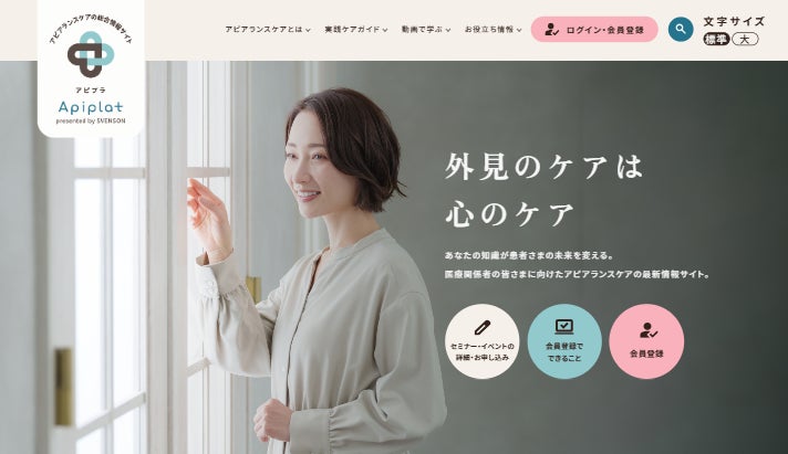 株式会社スヴェンソン(本社:東京都港区、代表取締役社長 児玉義則)レディス事業部は、医療従事者向け情報サイト(https://ladys.svenson.co.jp/medical/)を、外見ケア情報などを発信するアピアランスケアの総合情報サイト「アピプラ」として2024年10月1日(火)よりリニューアル公開いたします。