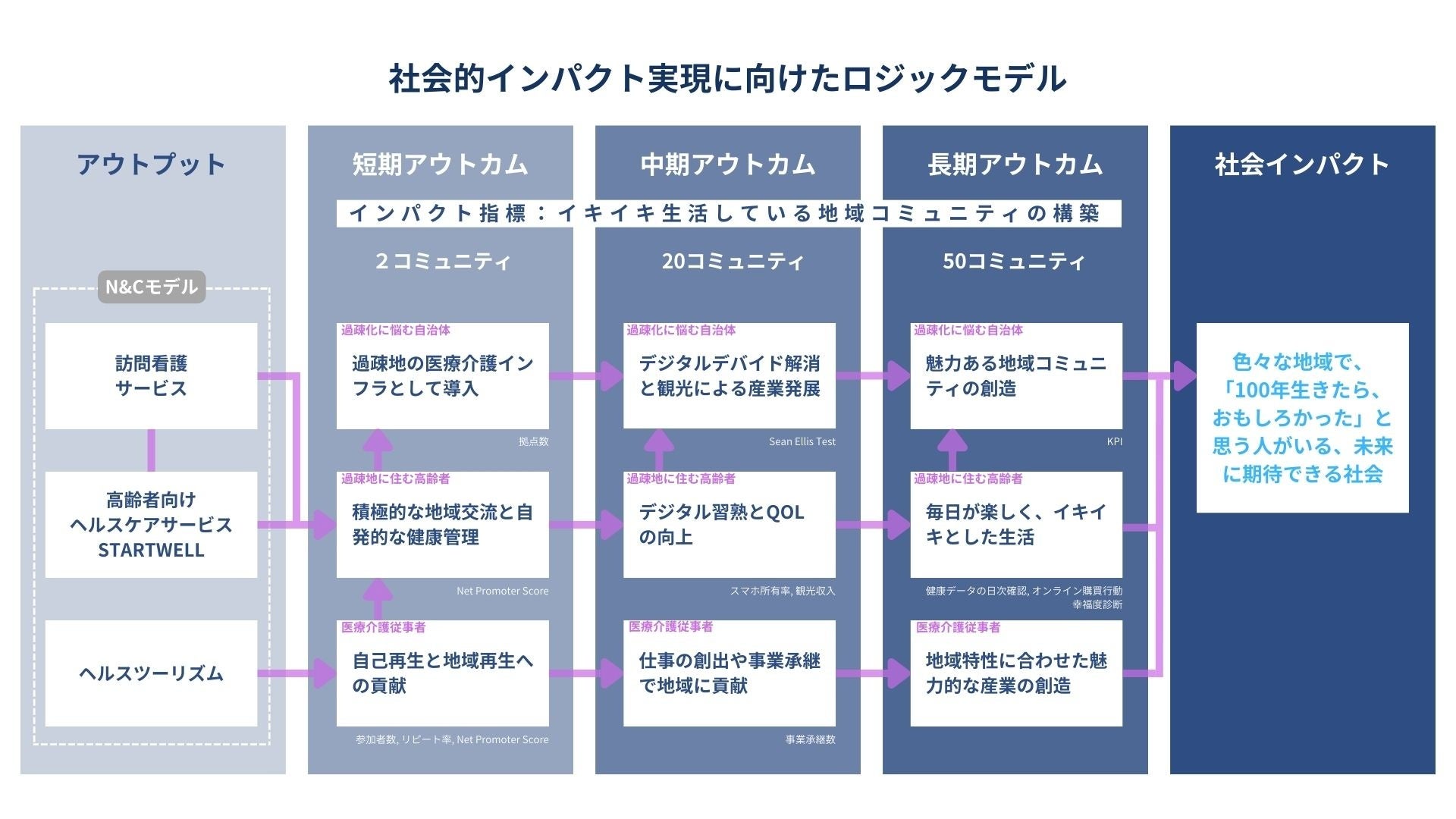 当社は引き続き、N&Cモデルの過疎地実装と高齢者向けヘルスケアサービス「STARTWELL」の両面において、国内外で協業や連携、出資を希望する企業や自治体、投資家を募り、アジア地域の共通課題である急速な高齢化に共に対応していくことを積極的に試みます。インパクトスタートアップとして、さらなる社会的インパクトの創出を図っていきたいと考えています。