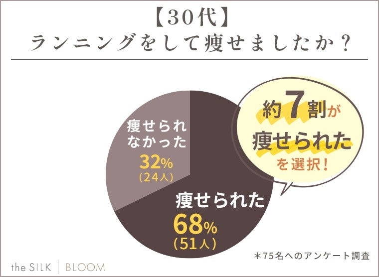 30代にランニングによるダイエット効果があったかを調査したところ、「痩せられた」と答えた方が68%という結果に