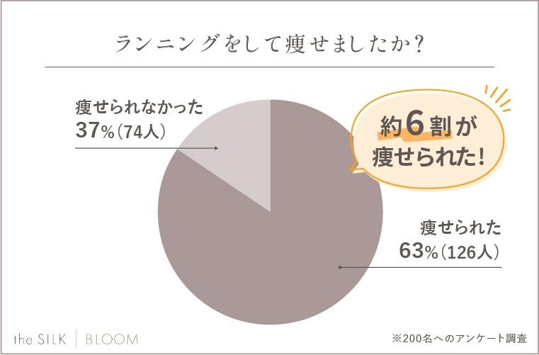 実際に200名に「ランニングで痩せられたか」を調査したところ、痩せられた方が63%と多数派でした