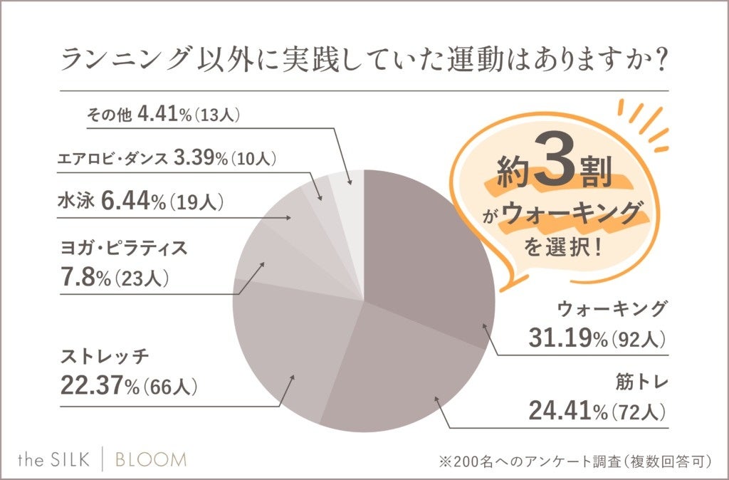 実際にランニング以外にやっていた運動はあるか調査したところ、筋トレはウォーキングに次いで第2位でした。