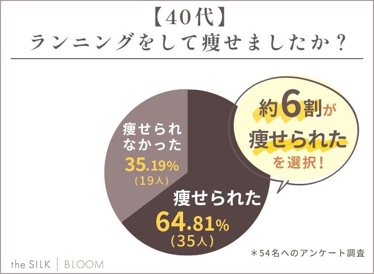 40代を対象にランニングは痩せるのか調査したところ、「痩せられた」と回答した方は約64%と半数以上でした!