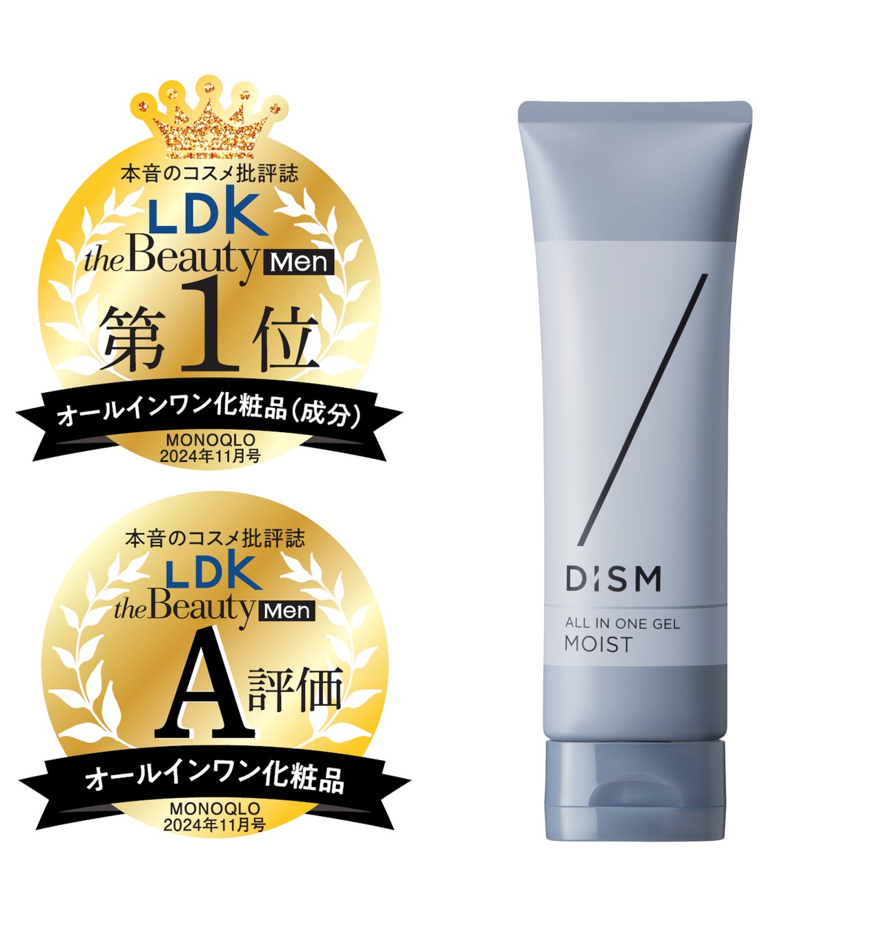 この度同シリーズの「ディズム オールインワンジェル モイスト(しっとりタイプ)」が晋遊舎のテストするモノ批評誌『MONOQLO」の「LDK the Beauty Men(『MONOQLO』×『LDK the Beauty』合同企画) オールインワン化粧品部門」にてA評価、成分評価では1位をW受賞いたしました。