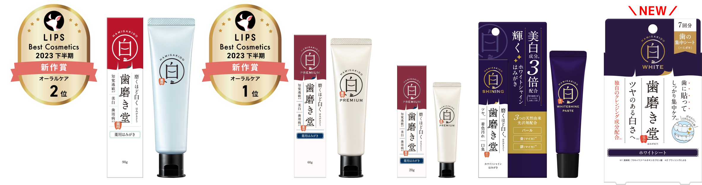『歯磨き堂』は、30年以上オーラルケアを研究し続けた歯科専門家をはじめ、研究・開発・製造分野の職人の知が集結した本格ホワイトニングケアブランドです。2023年4月に、バイオセラミックス研究に基づいて生まれた特別な美白処方である「ホワイトアパタイト処方*3」を採用した新発想のホワイトニングペーストを販売開始しました。