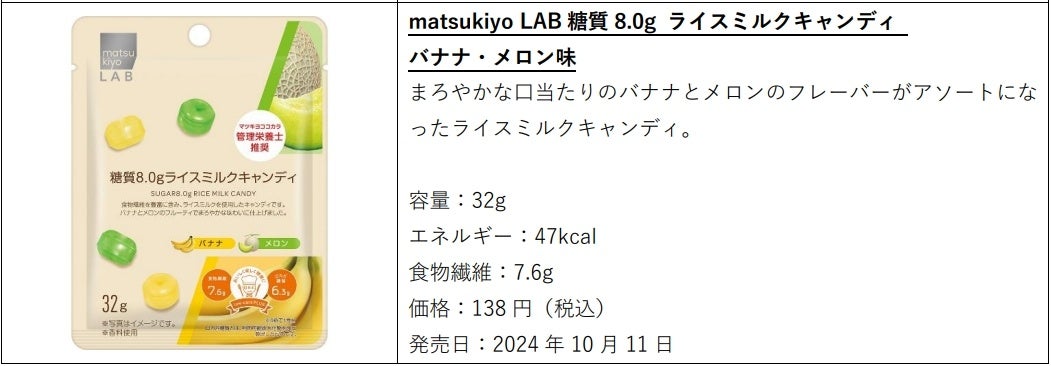 ●まろやかでフルーティーな味わいの「matsukiyo LAB糖質8.0g ライスミルクキャンディ バナナ・メロン味」