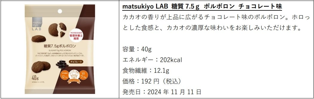 ●カカオの香りが広がる上質で濃厚な味わいの「matsukiyo LAB糖質7.5g ポルボロン チョコレート味」