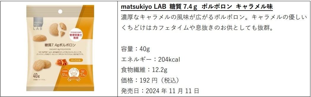 ●キャラメルのミルキーな美味しさがくちどける「matsukiyo LAB糖質7.4g ポルボロン キャラメル味」