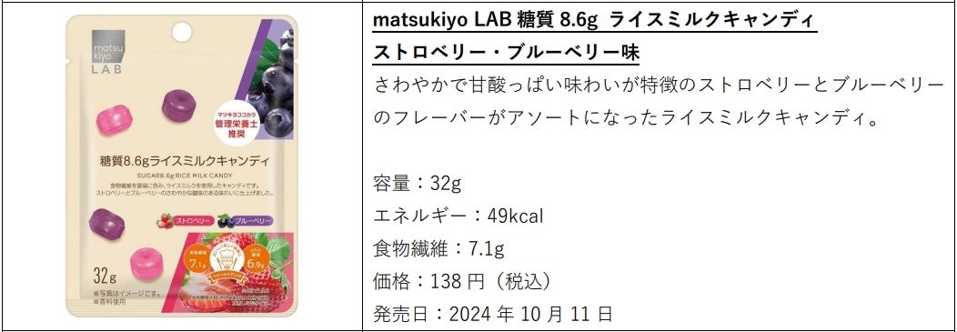 「matsukiyo LAB糖質8.6g ライスミルクキャンディ ストロベリー・ブルーベリー味」