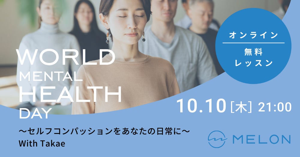 マインドフルネスのオンラインプラットフォーム「MELONオンライン」を運営する株式会社Melon(本社:東京都港区、代表取締役CEO:橋本大佑、以下MELON)は、2024年10月10日(木)の世界メンタルヘルスデーに、無料のオンラインレッスンを開催いたします。