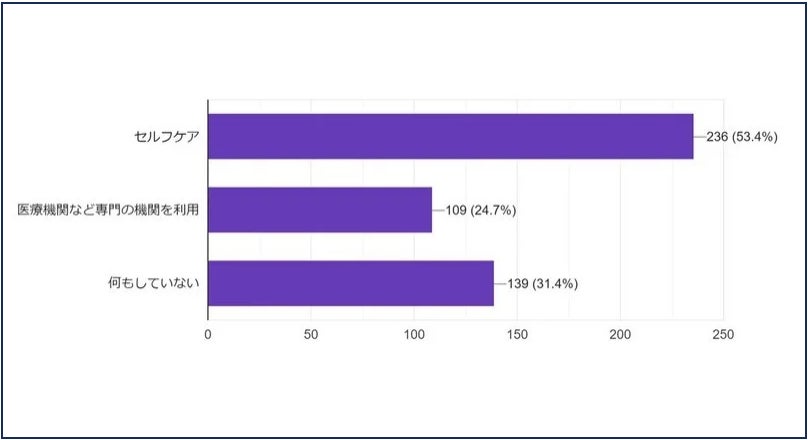 一方で、女性特有の健康課題についてはこれ以上解決できないこととして、半数以上がセルフケアで対処しており、周囲から十分な理解やサポートが得られているとは言い難い実態があります。