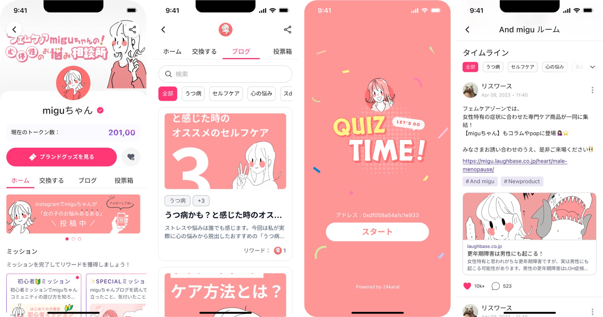 フェムケアの悩みを解決!LAUGHBASEと24karatが女性特有のお悩み解決をサポートすべく、「miguちゃん」オンラインコミュニティを立ち上げ
