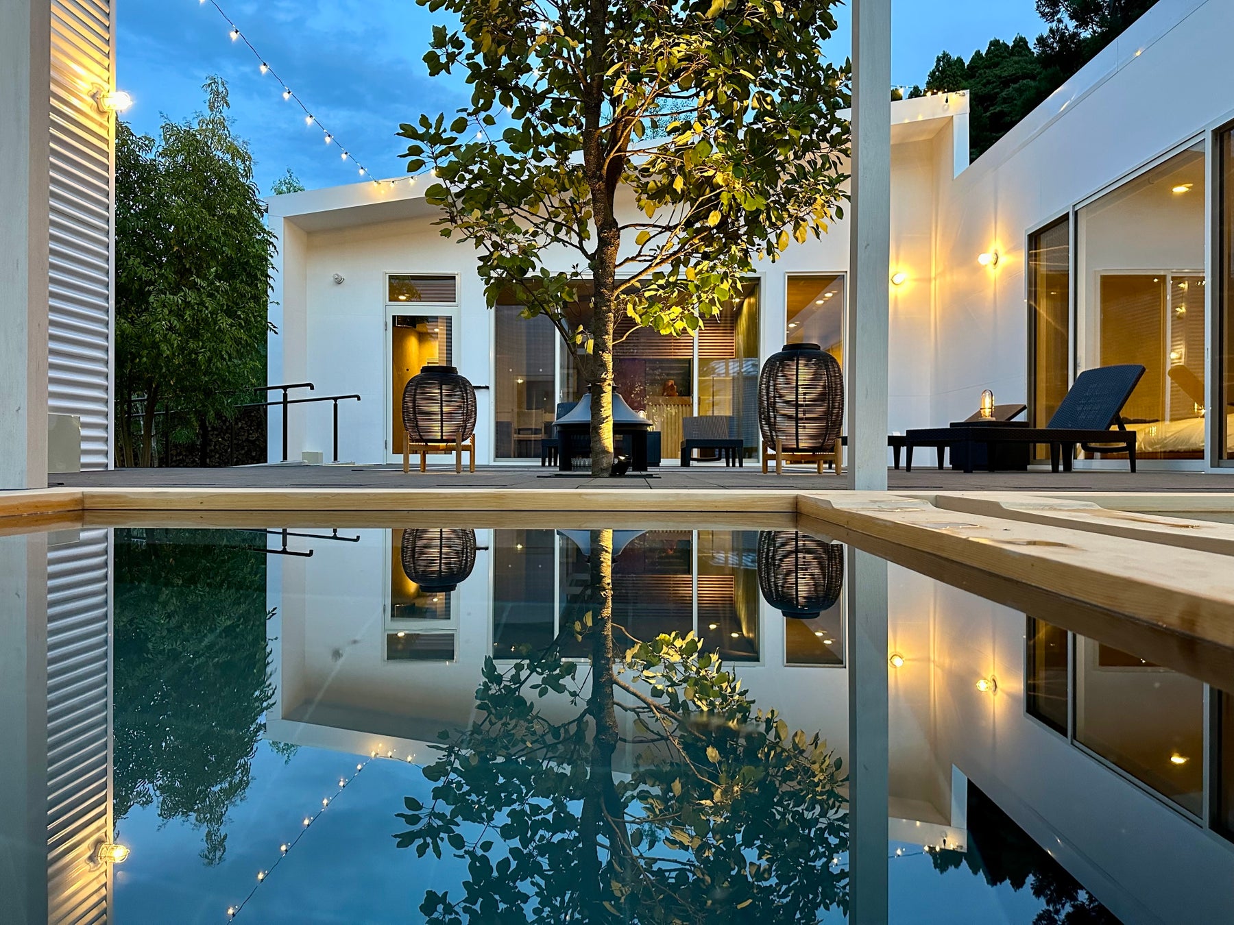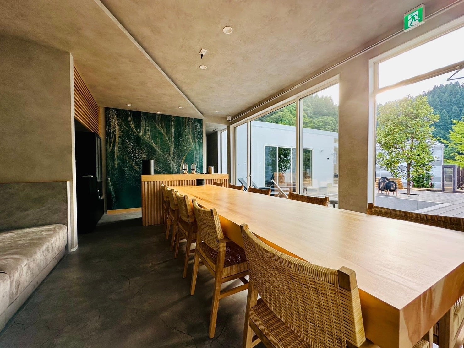 「LOCA THE JUNPU」では、LOCAブランド初の宿泊施設として、一日一組限定の貸切宿でマグマスパ式サウナ、絶品のお食事、水素カプセル、プライベートジム、BBQなどを贅沢にお楽しみいただける施設です。