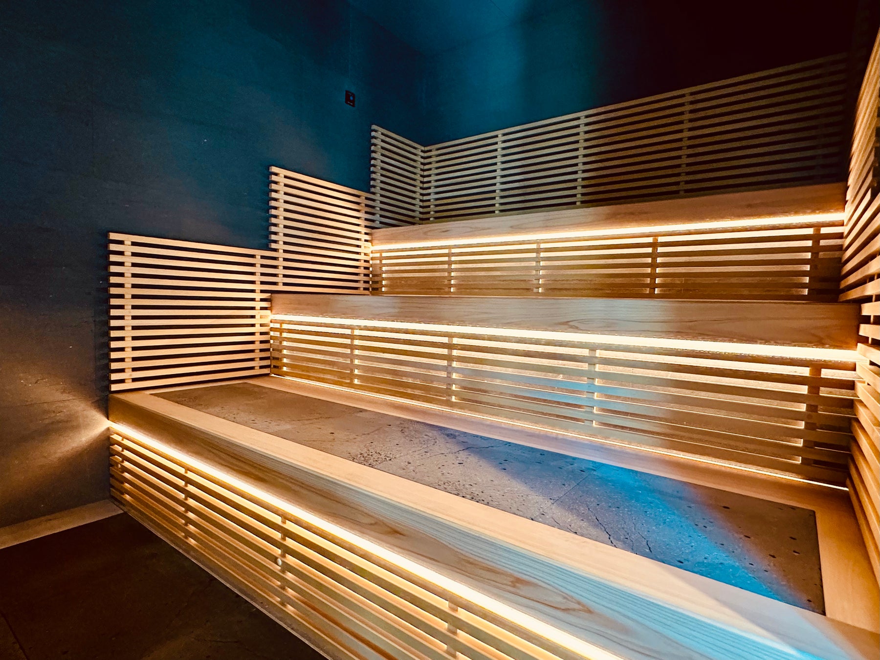 「富士山溶岩浴」「マグマストーン×ロウリュ」を組み合わせた、“室温×湿度×育成光線”の⻩⾦⽐による3 次元ヒーティングシステムを導入し、“体温+1℃”となるような室温と絶妙な湿度バランスを実現しています。