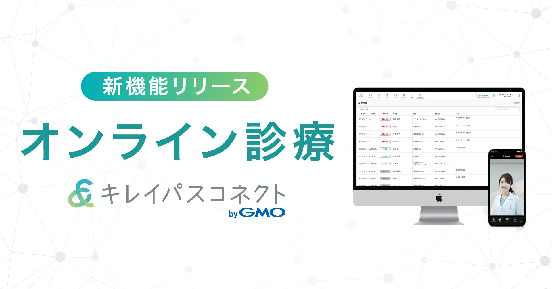 美容医療やアンチエイジング、発毛治療、ダイエット治療などの自由診療分野では、対面診療を必要としないカウンセリングや経過観察などをオンラインで済ませたいというニーズが高まっています。これまで「キレイパスコネクト byGMO」では、自由診療・美容クリニックのデジタル化を推進し、一気通貫で効率的な院内オペレーションの構築を支援してまいりましたが、この度の『オンライン診療機能』のリリースにより、こうしたニーズに応え、オンラインで完結する医療提供フローを構築し、患者の利便性向上とクリニックの運営効率化を実現します。