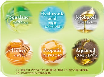 *1 保湿 *3 アセチルヒアルロン酸Na(保湿) *4 ホホバ種子油(整肌)、オリーブ果実油(保湿)