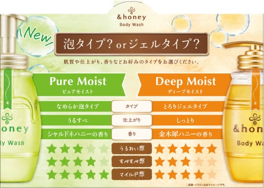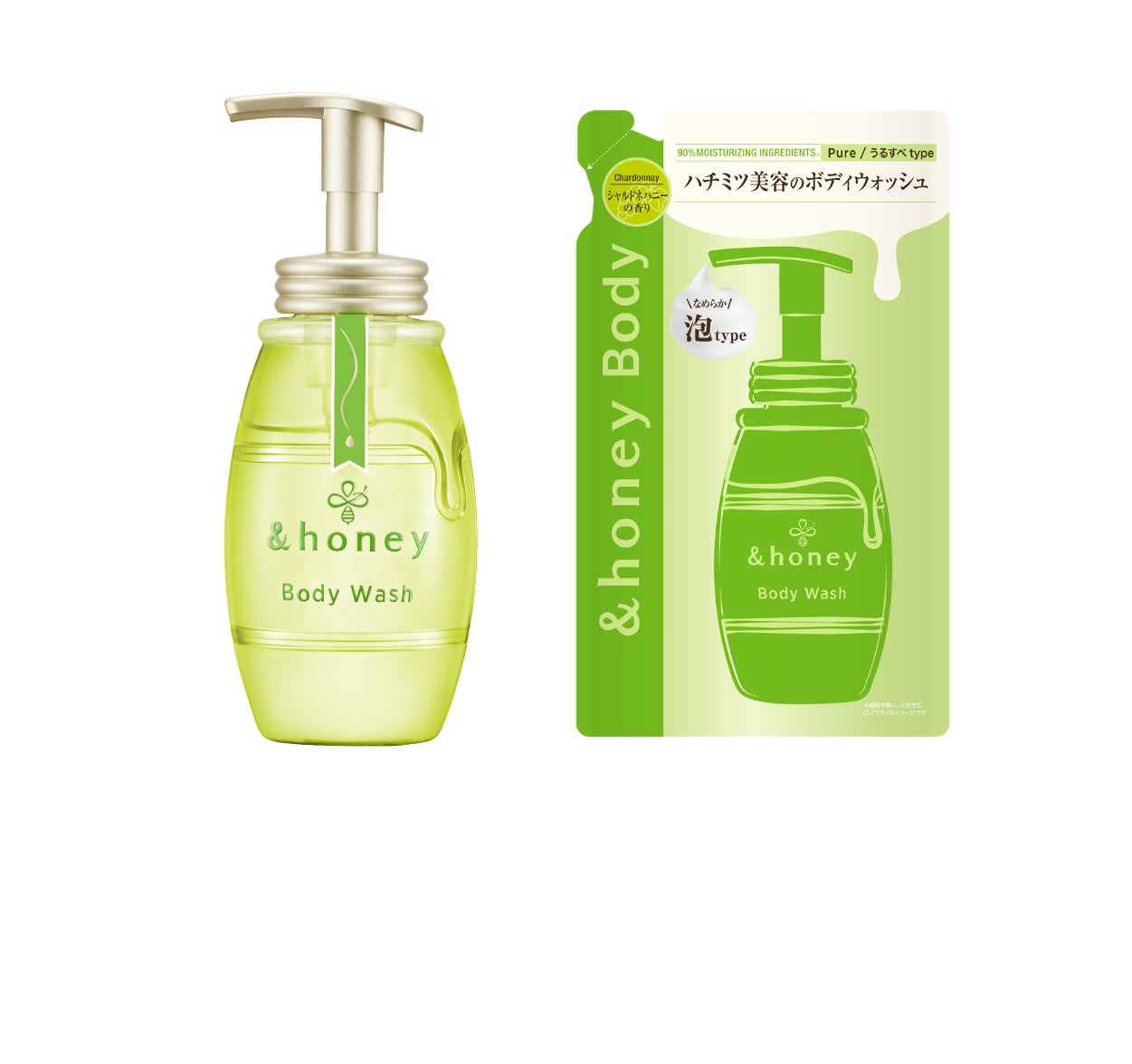 新シリーズの『アンドハニー ピュアモイスト 泡ボディウォッシュ』は、みずみずしく上品な「シャルドネハニー」の香りを採用。うるおいを残しながらすべすべな洗い上がりを実現しました。