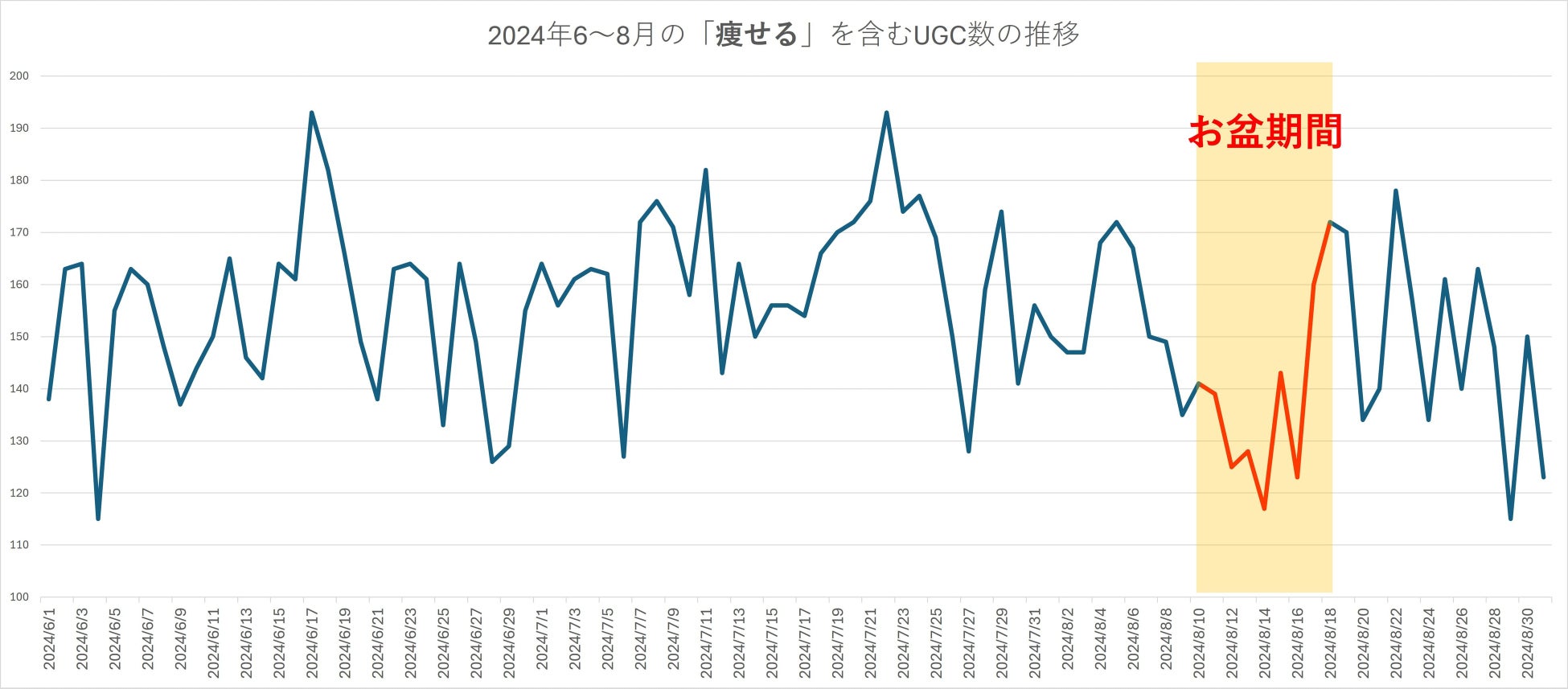 ■2024年6月1日~2024年8月31日の「痩せる」を含むUGC数の推移