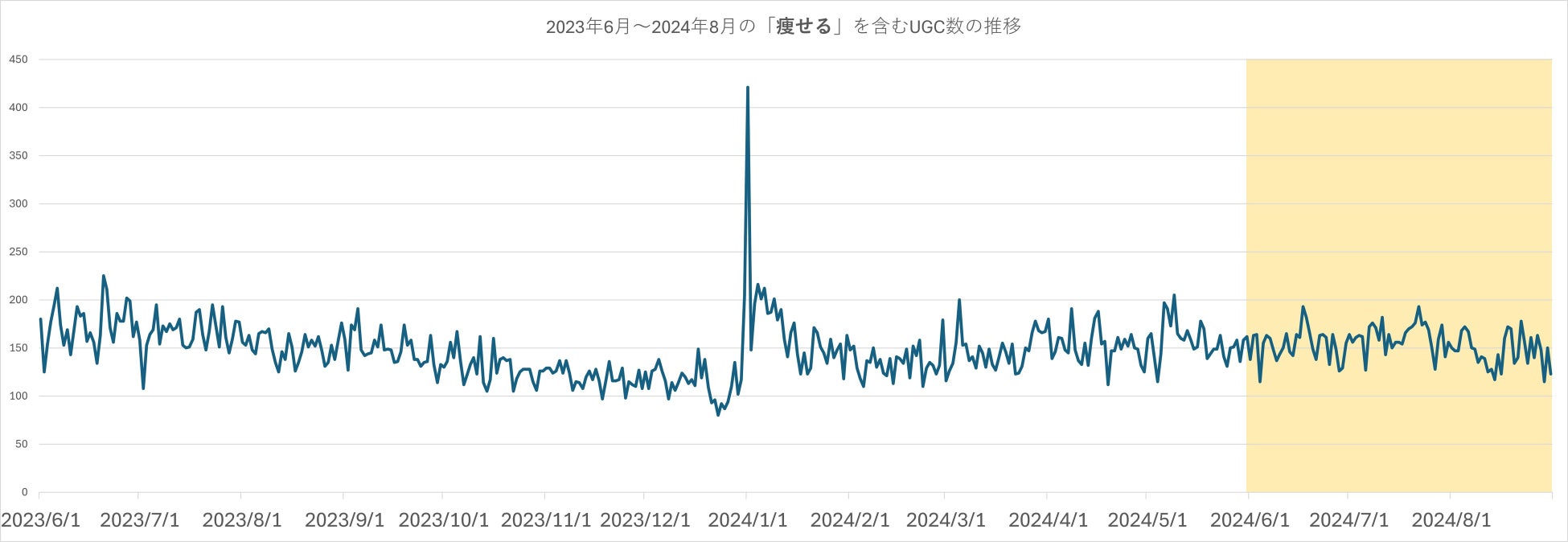 ■2023年6月1日~2024年8月31日の「痩せる」を含むUGC数の推移