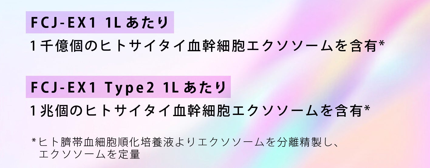 〇 FCJ-EX1 Type2 : 1Lあたりに1兆個のヒトサイタイ血幹細胞エクソソームを含有*