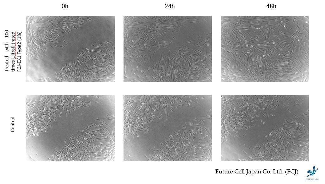ヒト繊維芽細胞に、FCJ-EX1 Type2に含まれるエクソソームを異なる濃度で与え