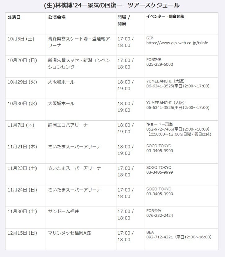 2018年の「(生)林檎博’18-不惑の余裕-」以来となる、6年ぶりのアリーナライブツアーです。その名も「(生)林檎博’24-景気の回復-」。10月5日の青森県営スケート場・盛運輸アリーナを皮切りに、全国7会場10公演。さいたま、大阪、福岡のほか、青森・新潟・静岡・福井で開催します。数年に一度の”Ringo Expo”だからこその、特別なステージを、どうぞご期待ください。