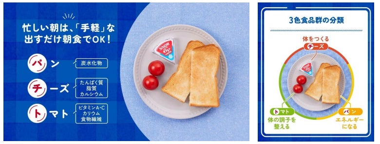 今回の調査で、平日の朝に栄養バランスを考えるのが難しく、パンだけの朝食になってしまう家庭が多い傾向にあることが明らかになりました。出すだけで手軽に食べられる「パチト」は、炭水化物・たんぱく質・脂質の3大栄養素のバランスが整っている簡単メニューです。平日の忙しい朝でも、「パンだけ」の朝ごはんに、手軽にたんぱく質の摂れるチーズや、トマトをプラスしてみてはいかがでしょうか。