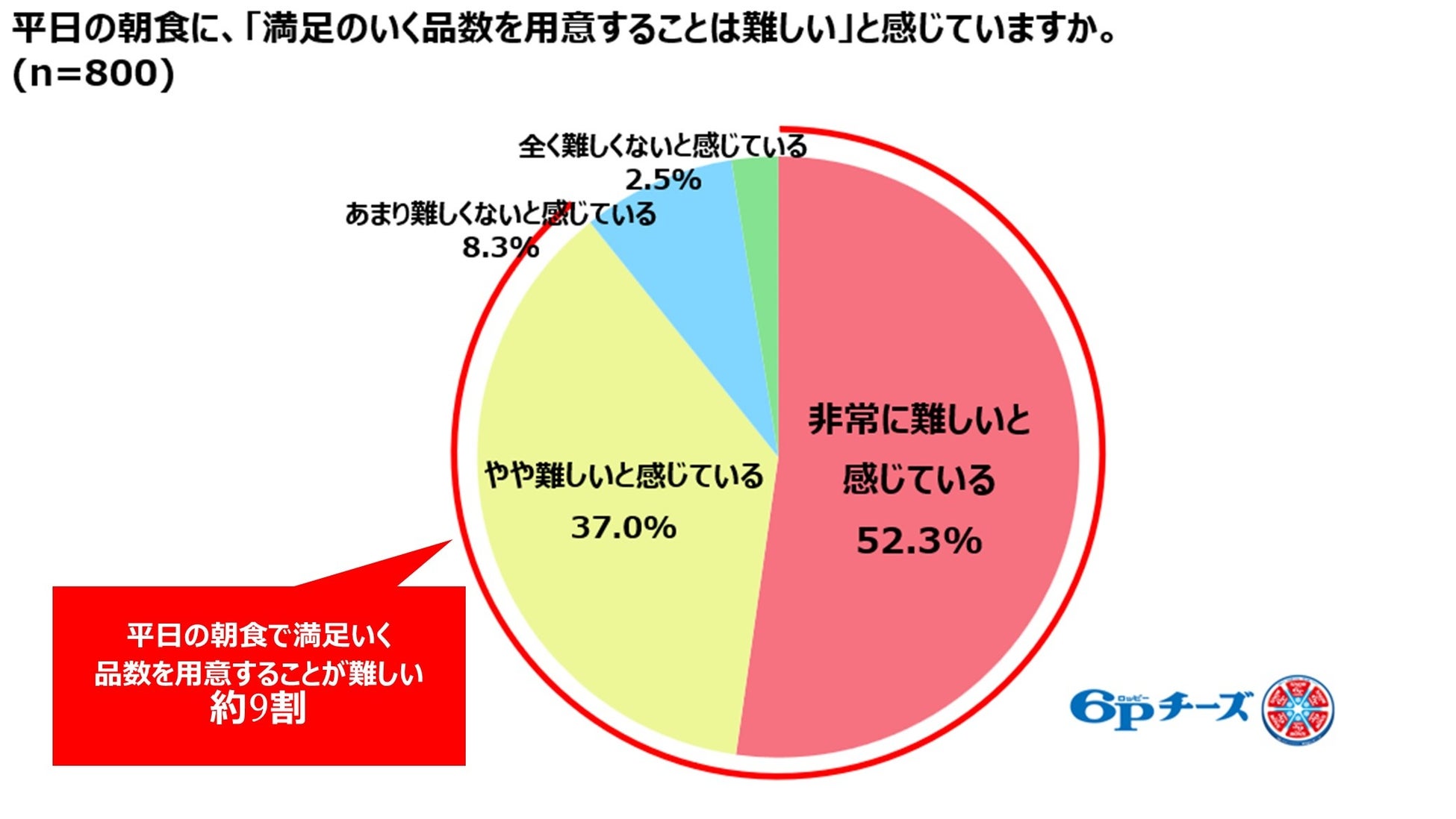 また、「満足のいく品数を用意することが難しい」と回答した人が約9割(89.3%)にのぼり、朝食メニューが「パンだけ」の日が週2日以上の家庭が約6割(59.5%)にのぼることが明らかとなりました。