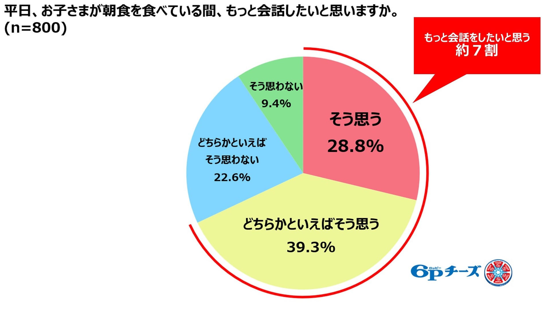 ▽平日、子どもが朝食を食べている間、もっと会話したいと回答した人は7割近くに