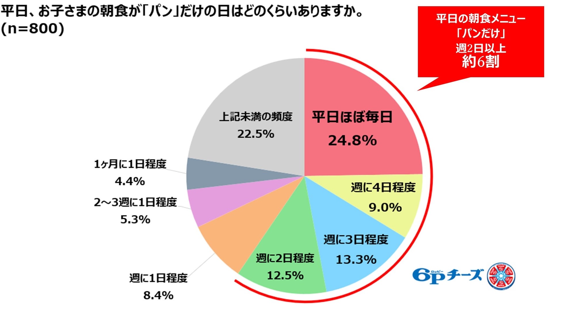 平日はほぼ毎日パンだけを出しているご家庭は2割を超える(24.8%)ことがわかりました。
