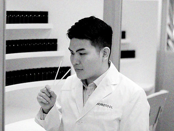 入社以来、JALエグゼクティブラウンジやJRタワーホテル日航札幌等数々のオリジナルアロマ創香プロジェクトをリードし、天才の名を欲しいままに。香り(アロマ)のみならずあらゆるニオイを再現する日本有数の究極の嗅覚の持ち主。