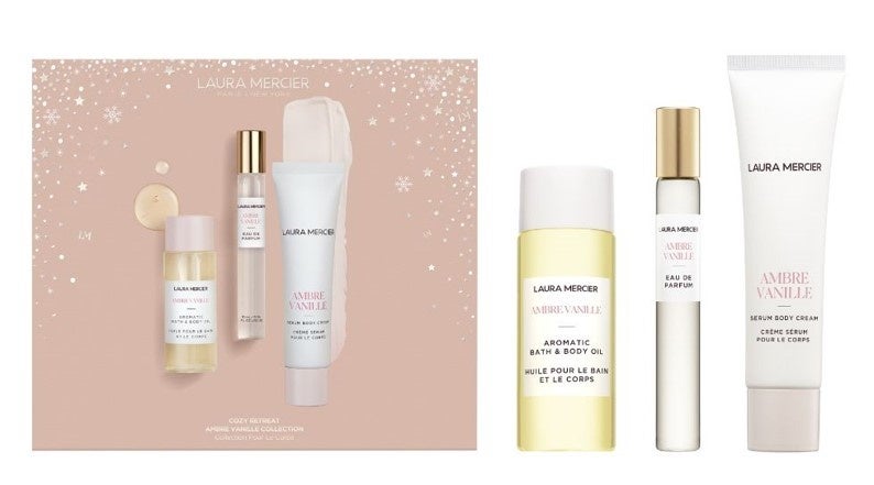 やさしく包み込むバニラと官能的なアンバーに、リラックス感のあるタンジェリンとブラウンシュガーの香りをブレンドした、ローラ メルシエ人気No.1の香り「アンバーバニラ」。肌にうるおいを与えるのと同時に、気持ちを穏やかに癒してくれるような甘い香りを堪能できる3アイテムをセット。