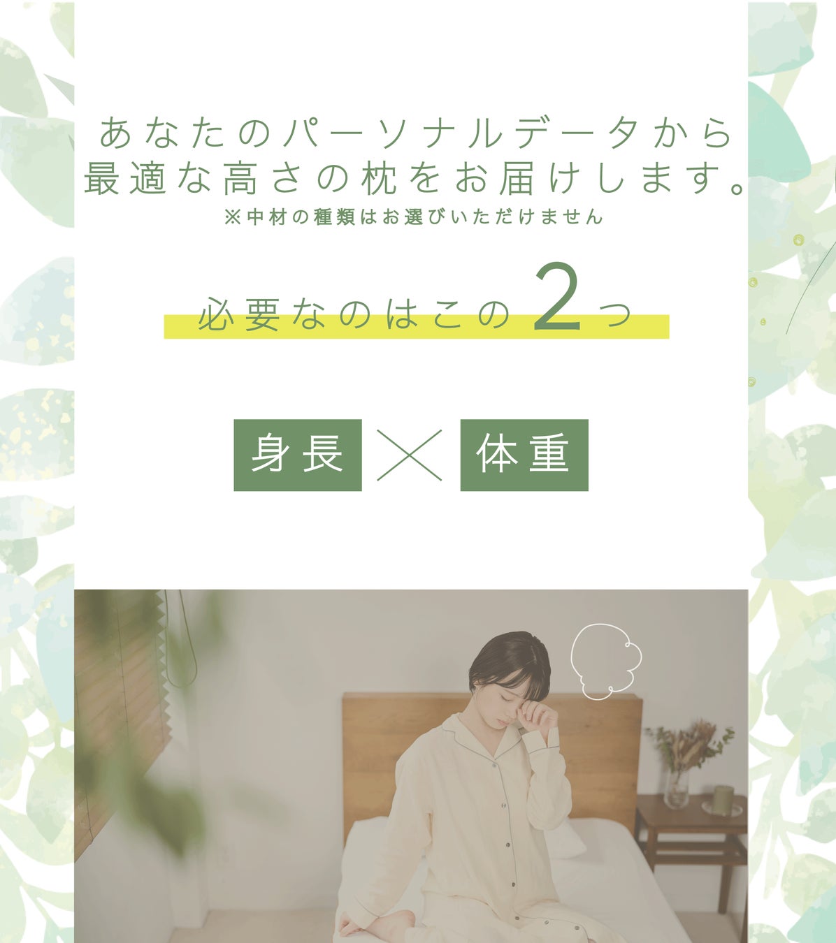 枕作りに必要なでーたは「身長」×「体重」だけ。