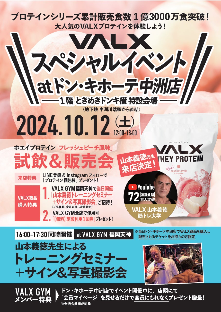 この度、各地方から好評のお声をいただき、九州にてVALX史上初のコラボイベントをドン・キホーテ中洲店とVALX GYM福岡天神にて開催する運びとなりました。