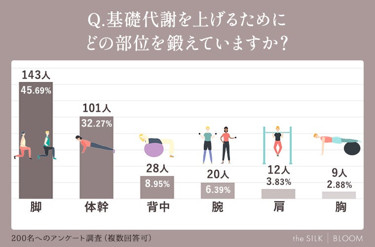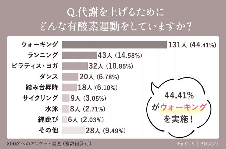 そこで今回the SILK編集部では、代謝を上げるためにおすすめな運動を200名に調査しました!